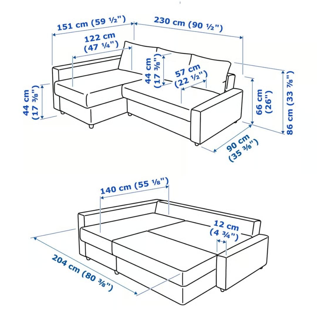 - Chaise Depth: 151 cm (59 ½”)